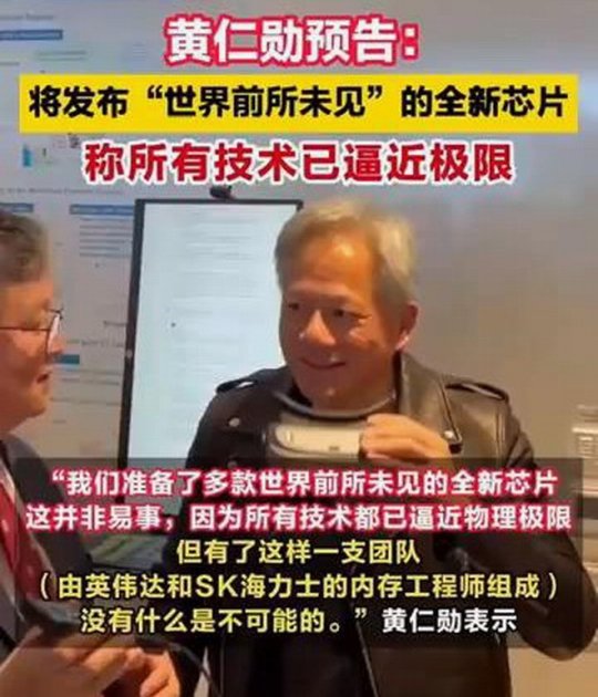 黄仁勋表示:“我们准备了多款世界前所未见的全新芯片。这并非易事,因为所有技术都已逼近物理极限,但一切都充满挑战。”