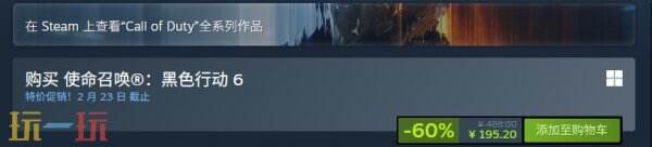 《使命召唤:黑色行动6》四折新史低!,标准版售价195.2元,豪华版售价241元,2月23日恢复原价,有需要的玩家抓紧时间入手!