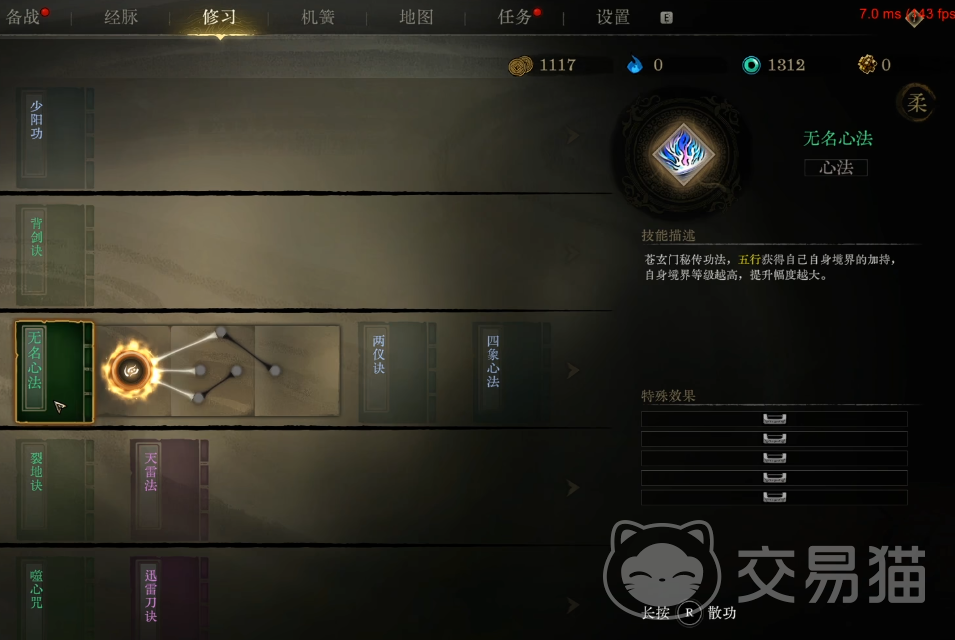 技能系统划分为外功(修身)与内功(修心)两大分支。副本挑战是获取技能点与修心点的主要途径。外功技能采用随机解锁机制,支持无损重置;而修心等级则需逐级提升,每次升级均直接转化为基础战力增幅,稳定性强且成长可见。