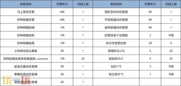 4.兑换商店:使用发财天幕积分可在兑换商店兑换指定奖励,兑换信息如下: