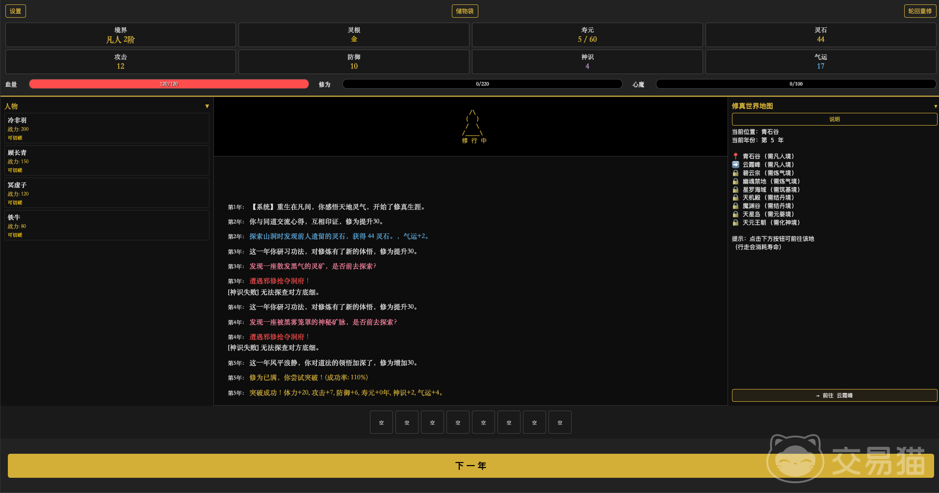 游戏的核心玩法深度植根于修仙世界观设定。每位修士初始灵根由系统随机生成,涵盖单灵根、五灵根及稀有变异灵根三大类型,不同灵根对应差异化的资质成长曲线与功法适配路径,极大提升了角色养成的策略维度与长期可玩性。这一机制杜绝了千人一面的成长模板,真正实现“一人一命格,一修一道途”。