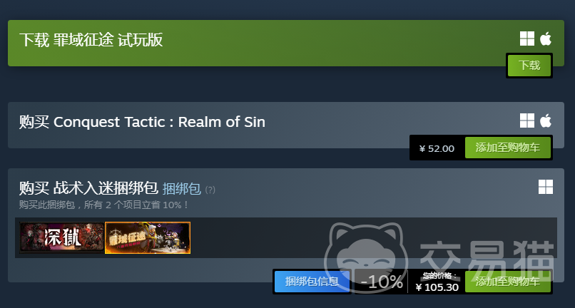 根据Steam平台官方页面显示,《罪域征途》当前标准版定价为52元,暂未开启任何折扣活动。另提供“罪域征途 深狱”双游戏捆绑包,售价105.30元,相较单独购买两作合计节省约10%费用。对于偏好硬核战棋与剧情驱动体验的玩家,该捆绑包具备更高内容密度与长期可玩性,推荐优先考虑。此外,Steam平台已上线免费试玩版本,支持完整前期流程体验,便于玩家在实际投入前评估操作逻辑与风格适配度。