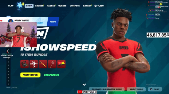 知名网红甲亢哥IShowSpeed现已加入《堡垒之夜》,同捆包限时优惠价3000V币。包括皮肤、姿势、外观、背饰、徽章、即兴曲目等。该同捆包将于1月4日前开放购买。